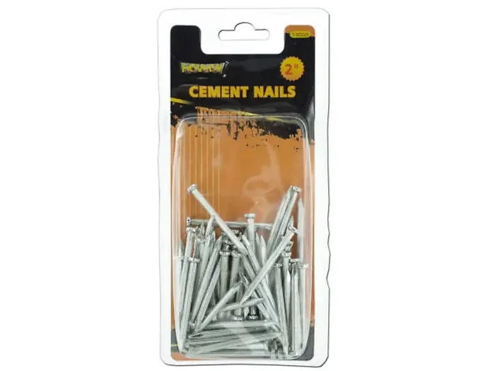 Introducing our Heavy-Duty 2-Inch Cement Nails Pack, designed to make nailing into concrete a breeze. Each nail features fluted sides for better grip and stability, ensuring a secure hold in any concrete surface.