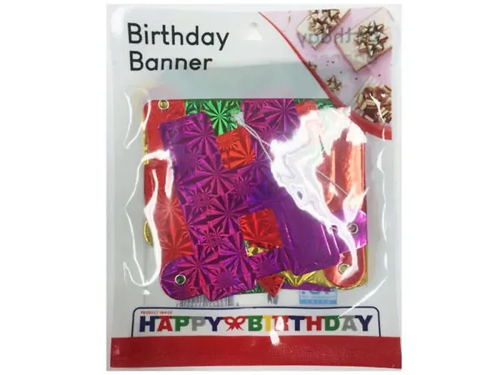 Celebrate in style with our Colorful Happy Birthday Foil Banner! This vibrant banner features prismatic letters that spell out 'HAPPY BIRTHDAY' with a charming cutout bow in the center.