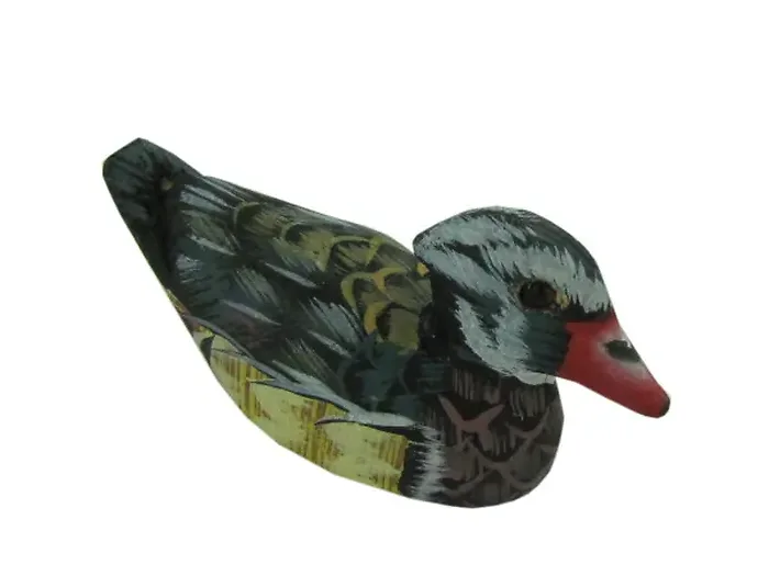This charming decorative piece is perfect for any duck lover or collector. The colorful painted wood duck figurine is crafted to resemble a realistic duck, making it an eye-catching addition to your home or office decor. Each duck sits flat on a table, shelf, or any surface, bringing a touch of nature indoors.