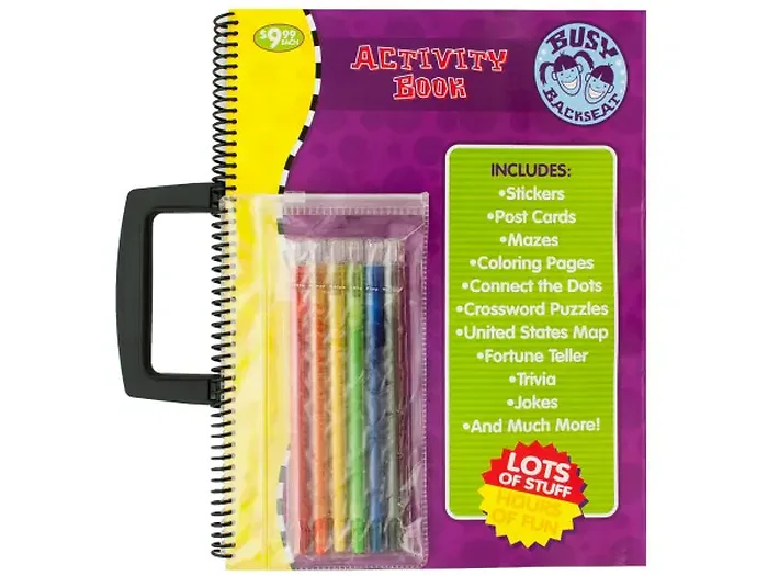 Make every road trip more enjoyable with the Ultimate Backseat Adventure Activity Book! This engaging activity book is filled with a variety of fun tasks, making it the perfect travel companion for kids. It includes stickers, postcards, mazes, coloring pages, connect-the-dots activities, trivia questions, jokes, and so much more.