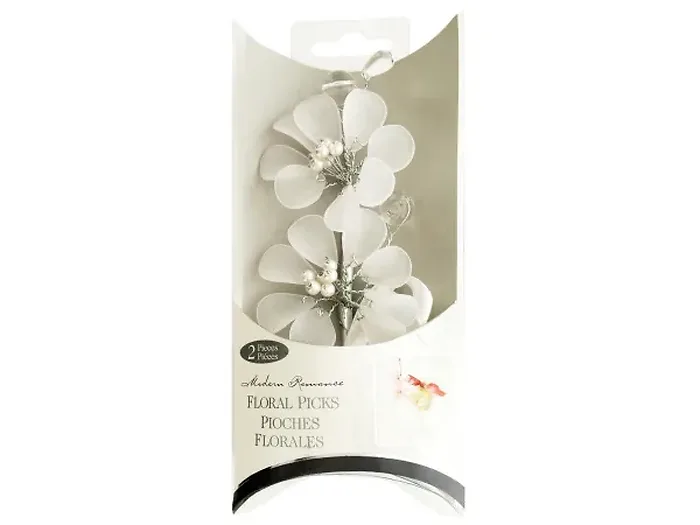 Enhance your event with these elegant Frosted Clear Floral Picks. This 2-piece set features beautifully designed flowers made of frosted plastic petals, accented with clear drops and faux pearls. The flexible silver wire and bendable stems allow for easy arrangement, making them a perfect addition to your tabletops, favors, and decorations.