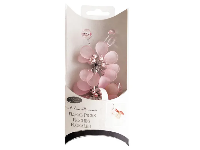 Great for favors, decorations and more, this 2-piece Frosted Pink Bouquet Floral Picks Set features flowers made of frosted plastic petals and clear pink drops with faux pearl accents, silver wire and bendable silver stems. A perfect way to add decoration to your tabletops. Comes packaged in a hanging panel.