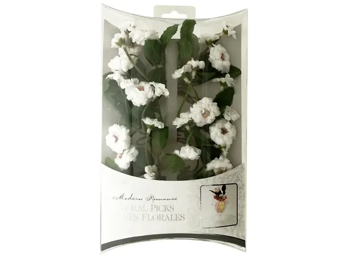 Add a touch of nature to your decor with the Elegant Apple Blossom Floral Picks. This set includes six beautifully crafted picks featuring delicate white flowers that are intricately designed with green vines and leaves, complemented by bendable brown stems. Perfect for enhancing favors, table settings, or any floral arrangement, these picks are versatile and charming. Each set comes neatly packaged in a hanging box, making it an ideal gift for any occasion.