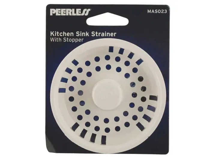 This Durable Plastic Sink Strainer is designed to keep your drains functioning smoothly. Made from high-quality white plastic, it features a sturdy center handle and a removable stopper that prevents debris from clogging your drain.