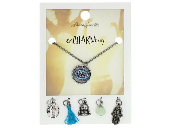 Evil Eye Charm Necklace with St. Jude and Hamsa Charms