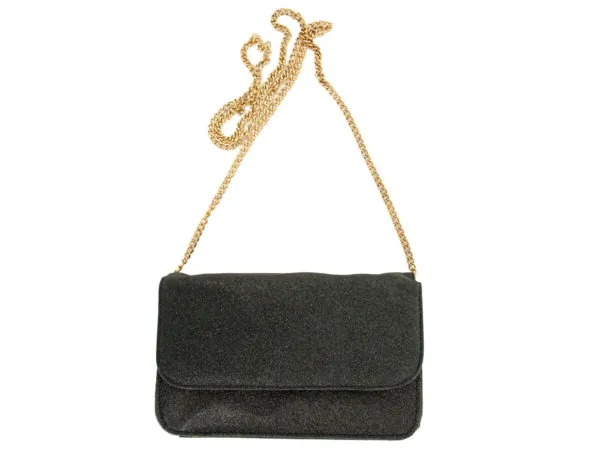 Elegant Black Glitter Evening Bag with Chain Strap