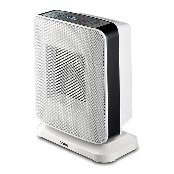 Optimus Oscillating Ceramic Heater uses ceramic heating elements to quickly warm up the air, then distributes it with an oscillating fan. Simply plug it in, set your desired temperature using the thermostat, and enjoy a warm room within minutes. Safety features like tip-over and overheat protection give peace of mind.