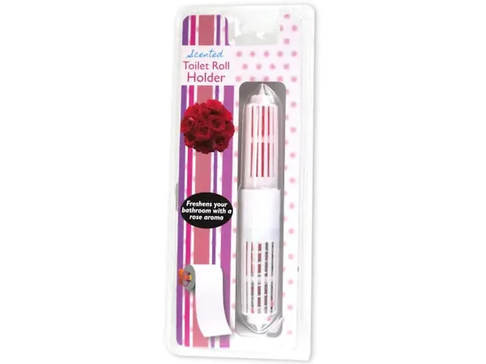 Everything in the bathroom can smell fresh and clean when you add this Rose Scented Toilet Paper Roll Holder. Every time the toilet paper is rolled, the toilet paper holder will leave a fresh scent in the bathroom. Fits standard toilet paper holders. Comes packaged in a blister pack.