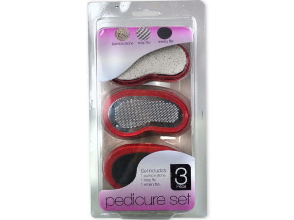 Save money and do your own pedicures at home with this useful Deluxe Pedicure Set. Five piece set includes all the tools you need for a beautiful at-home pedicure including a toe separator, nail brush, nail file, nail clippers and tweezers. Comes in assorted colors. File measures approximately 5" long, separator is 3" wide, brush is 2 1/2" wide, nail clipper is 1 3/4" long and tweezers are 2 1/2" long. Comes packaged in a blister pack.