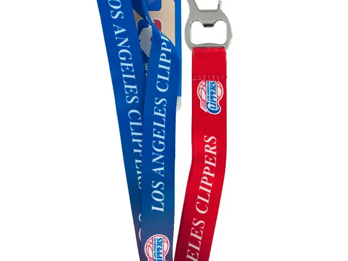 Show off your team spirit with this NBA Licensed Los Angeles Clippers Lanyard, equipped with a convenient bottle opener. The lanyard features a stylish blue and red gradient design that showcases the Clippers name and logo prominently. Measuring approximately 19.75 inches long, it is perfect for any Clippers fan aged 12 and up.