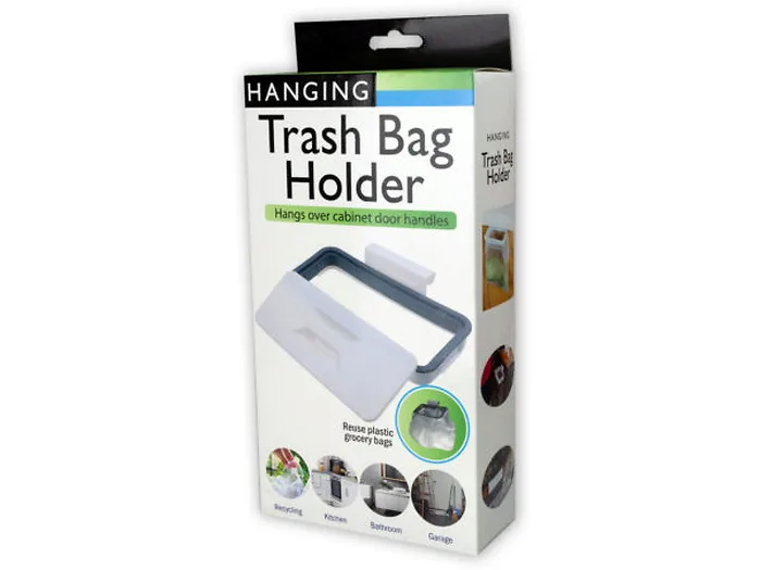 Being in the dollar merchandise business since its beginning, we know what sells, and we are always adding new and different items to our inventory. We are always looking for new items, and we have recently added pet items and craft supplies to our catalog. We design all of the packaging for our items to ensure that categories of merchandise have cohesive matching packaging, and that they are appealing to the eye. Perfect to hang over cabinets door handles. This Trash Bag Holder can be used in the kitchen, bathroom, and garage. Recycle the grocery plastic bags and place on the bag holder as a trash bag. SpecificationsDimension: 17.1 x 8.3 x 9.6 in.Weight: 4.88 lbs- SKU: SWM32441