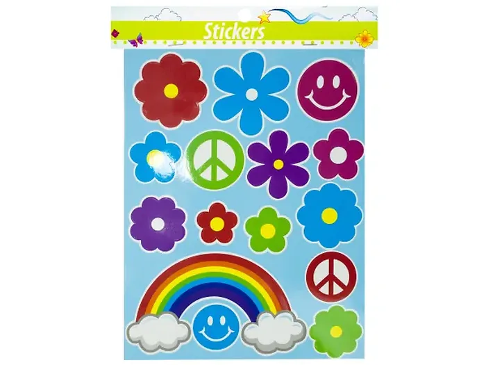 Add a splash of joy to your personal items with these colorful removable happy themed stickers. Perfect for decorating lockers, laptops, letters, and doors, this set includes a variety of cheerful designs such as flowers, peace signs, happy faces, and rainbows.