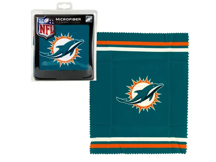 Keep your eyewear in top condition while showing your support for the Miami Dolphins with this microfiber eyeglass cleaning cloth. This NFL licensed cleaning cloth features a vibrant design showcasing the Dolphins logo and colors, making it not just practical but also a stylish accessory for any fan.