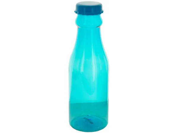 For a fun, retro way to store and drink beverages, try this Plastic Soda Pop Style Drinking Bottle with Cap. Sturdy plastic bottle with a cute screw-on cap that looks like a soda bottle cap. Perfect for homemade sodas, juices and other drinks. Measures approximately 9" x 3" x 2". Comes in assorted colors that may include green or yellow caps. Comes packaged in a poly bag.