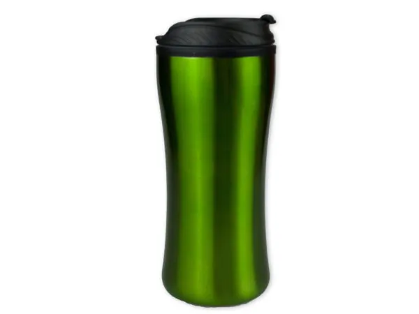 Enjoy your favorite beverages on the go with this stylish 18 oz Green Metallic Tumbler featuring a convenient sliding black lid. Designed for both hot and cold drinks, this durable coffee tumbler is perfect for starting your day off right.
