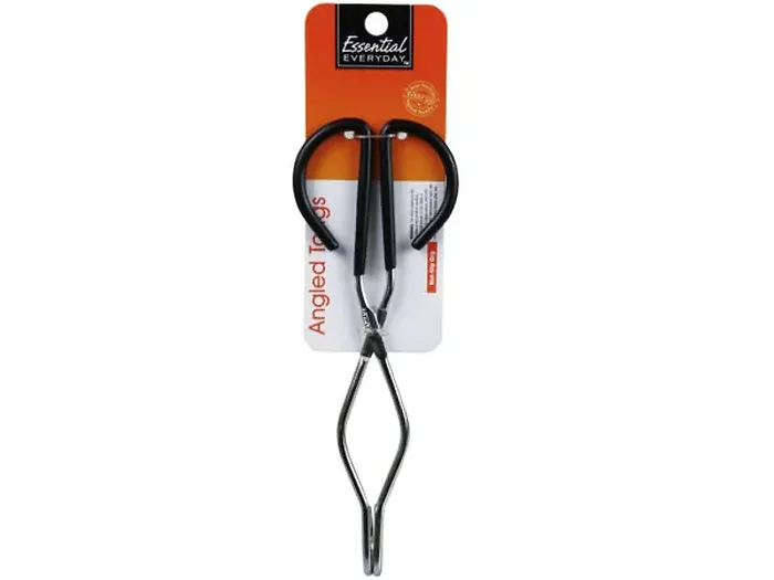 Essential Everyday offers these 8-inch scissor-style metal tongs designed with a heat-resistant rubber grip, ensuring safety and comfort while handling hot food. Perfect for lifting food from pans, grills, and boiling water, these tongs are an essential tool for any kitchen. They come packaged on a convenient hanging tie card for easy storage and accessibility.