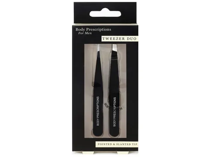 This Body Prescriptions 2-Pack Precision Black Soft Touch Tweezer Set is perfect for achieving precise tweezing results. With an all-metal construction and a soft-touch black coating, these tweezers are designed for comfort and control. Each tweezer measures approximately 3.75 inches long, making them easy to handle.