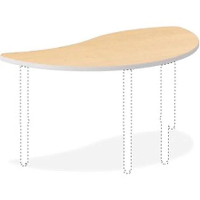 This tabletop shaped like a wisp is part of the HON Build Series that includes flexible tables for working, learning, sharing and training. From open areas and training rooms to collaborative spaces between, Build meets your needs on your terms and creates the foundation for a more productive workplace. The wisp tabletop is one of the unique, interchangeable Build tabletop shapes that easily move to create single or multiple user configurations. You can join two wisp tops for a round table, use multiple wisps for a petal configuration or mix it with half-round, rectangular tabletops and tabletops shaped like a ribbon (all sold separately). 1-1/8" thick worksurface is made of solid-core particleboard covered with thermal-fused, Natural Maple laminate that is abrasion-resistant and scratch-resistant. The height-adjustable metal legs with a platinum finish are sold separately and adjust from 25" to 34" to accommodate any size user. Bracket welded to leg allows easy installation.