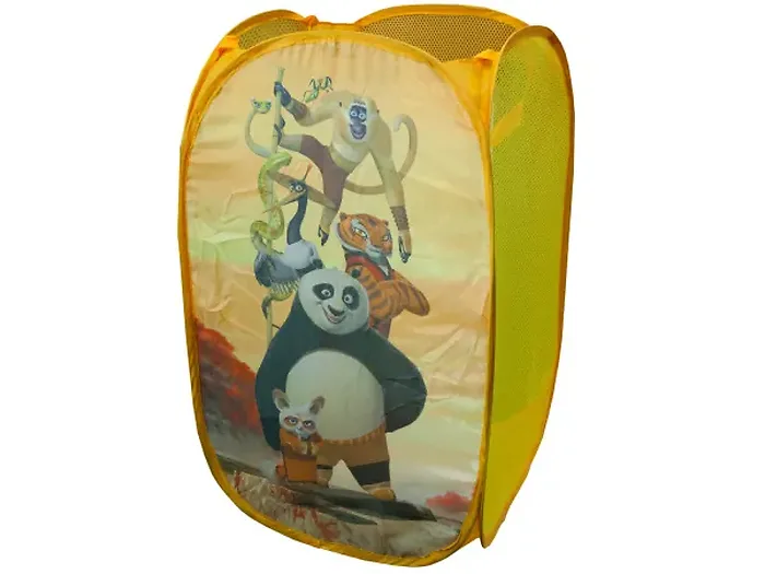 Keep your child's room organized with the Kung Fu Panda Expandable Kids Hamper. This fun and functional hamper is designed in vibrant yellow and orange colors, featuring a lively Kung Fu Panda print that your kids will love. Made from durable nylon and mesh, it is perfect for storing toys, clothes, and other items. The convenient top handles make it easy to carry around, ensuring tidiness in any room.