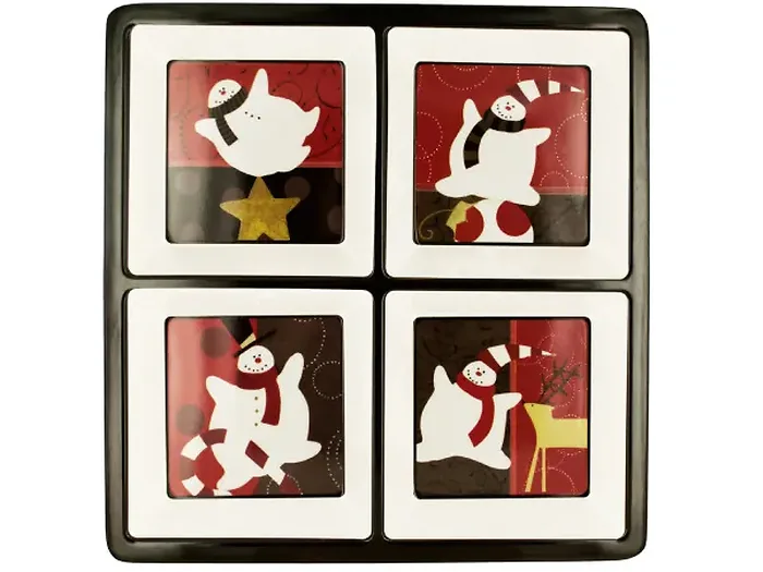 Celebrate the festive spirit with our Holiday Snowman Snack Serving Tray! This charming tray is ideal for serving an array of snacks, candies, and treats during holiday gatherings. Featuring a durable plastic construction, it includes four sections, each adorned with a unique snowman illustration and stylish black borders. Perfect for adding a fun touch to your holiday décor.