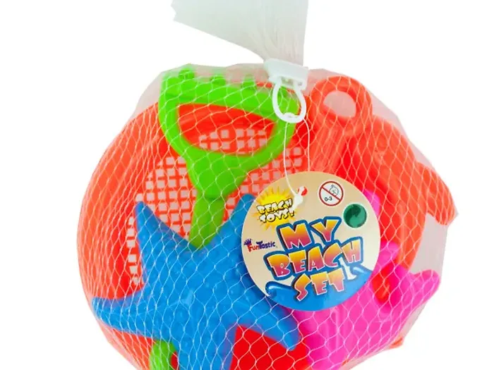 • Includes 5 colorful plastic beach toys