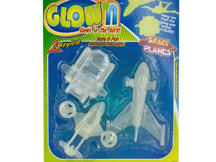 Ignite your child's imagination with the Glow In The Dark Space Planes Set! This exquisite 3-piece set features small plastic planes in various dynamic styles, perfect for creating an exciting outer space world. Each plane can be easily attached to fishing line or string for a delightful ceiling display. Complete with instructions, this set is ideal for children ages 4 and up and encourages creativity and play.