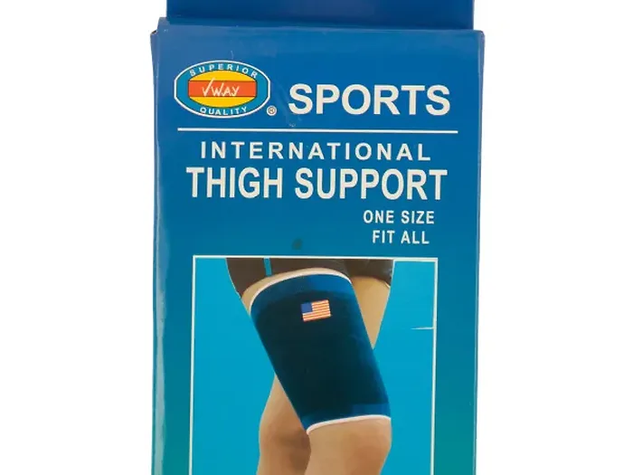Enhance your performance and protect your thigh during physical activities with our Adjustable Sports Thigh Support. This support features a comfortable, stretchy knit material that accommodates all body types. It includes a stylish American flag design at the top, showcasing your patriotic spirit. The product is easy to clean as it is machine washable, and it comes conveniently packaged in a hanging box for retail display.