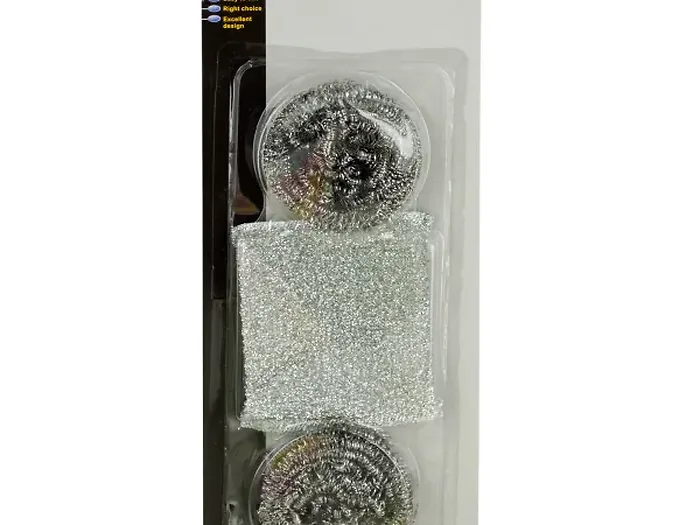 Maintain cleanliness in your kitchen with our 3-Piece Metal Scrubber and Scour Pad Set. This essential cleaning kit is perfect for tackling tough grime on cookware, countertops, and various surfaces.