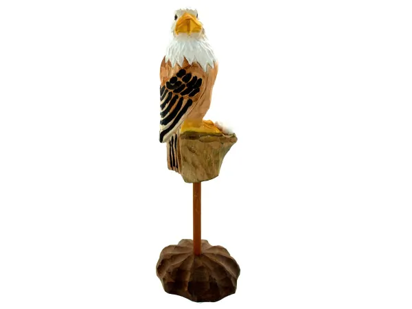 Elevate your decor with the Dreamy Blue Celestial Eagle Figurine. Crafted from high-quality resin, this stunning piece showcases a magnificent blue eagle beautifully perched on a realistic log, adorned with vibrant gold suns, moons, and stars that add a celestial touch. It's a perfect gift for bird enthusiasts and a charming addition to any collection.