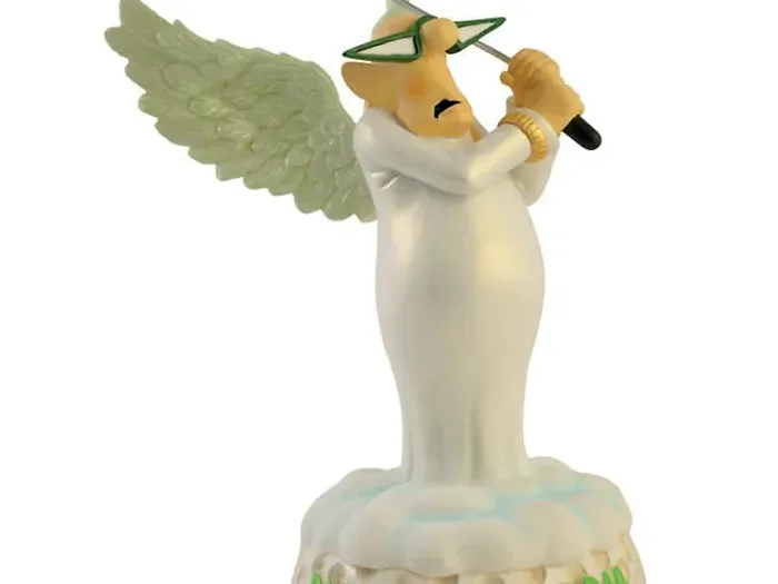 Add a touch of whimsy to your decor with the Dang! Cloud Trap Humor Figurine. This delightful resin piece showcases a humorous old man with angel wings, poised to tee off with a golf club while sitting on a fluffy cloud. The base is adorned with the fun phrase "Dang! Cloud trap", making it a perfect gift for golf enthusiasts or anyone who appreciates a good laugh!