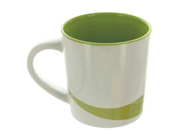 Glossy lime green exterior and white rim/handle