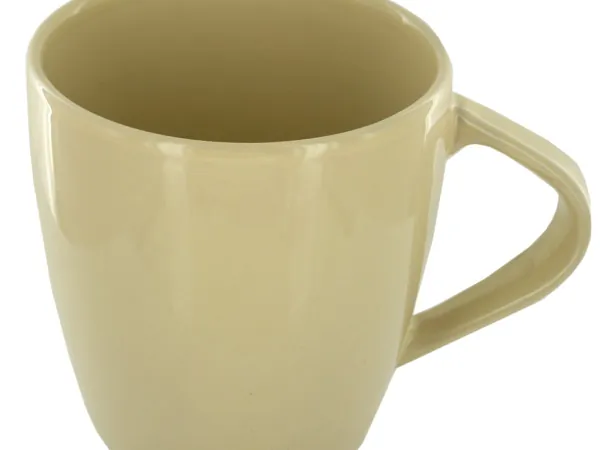 Holds approximately 18 ounces, this mug measures about 4.25 inches tall and 5.5 inches wide (including the handle). Its comfortable handle makes sipping your coffee or tea a pleasure. Comes loose for convenience.