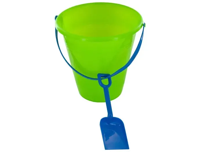The durable plastic bucket features a colorful design and a sturdy handle, while the included shovel makes sandcastle building a breeze. Each bucket stands approximately 9 inches tall, with a top diameter of 8.75 inches and a base diameter of 5 inches. The shovel is approximately 7.625 inches long with a 2.5-inch wide blade. Available in a variety of bright colors to keep kids entertained for hours!
