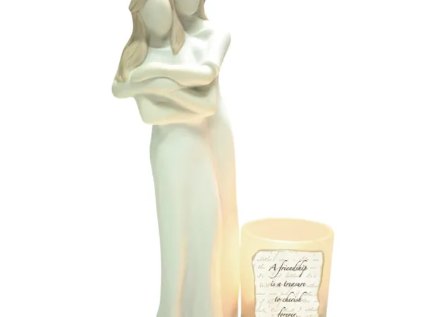 Enhance your living space with the Serene Angel Tealight Holder, a beautifully crafted piece that radiates tranquility. This stunning holder showcases a matte white angel with glossy wings, gracefully holding peace doves, embodying a message of harmony.
