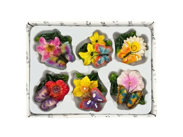 Add a touch of whimsy to your home with our Charming Butterfly and Flower Magnet Set. This delightful assortment of 6 hand-painted resin magnets features unique butterfly and flower designs that brighten up any fridge or metal surface.