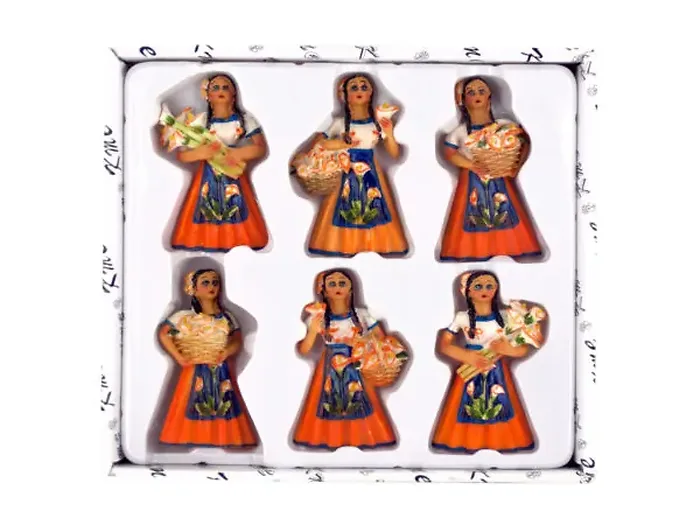 Enhance your home decor with the Elegant Calla Lily Woman Magnet Collection. This exquisite 6-piece set features hand-painted resin magnets, each showcasing a unique design of a woman gracefully holding calla lilies. Perfect for personalizing your refrigerator or any metallic surface, these magnets add a touch of elegance to your space.