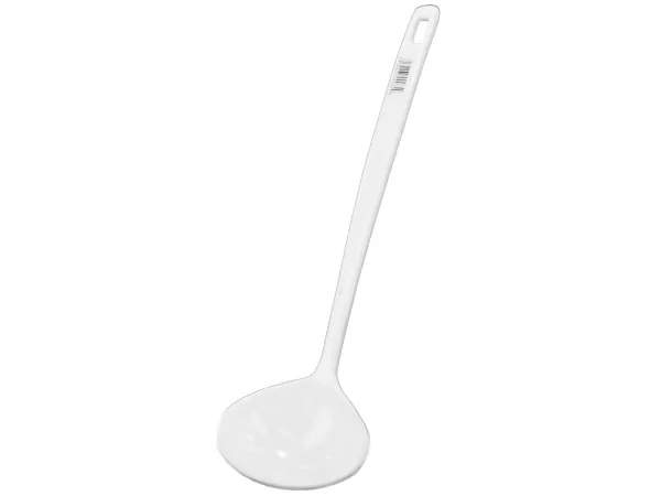 Effortlessly prepare and serve your favorite dishes with our Grape Themed Heat-Resistant Melamine Ladle. This durable kitchen utensil boasts a spoon end for smooth scooping and stirring, making it perfect for soups, stews, and sauces. The ladle's elegant curved handle is adorned with a decorative grape print, adding a touch of charm to your kitchen. Plus, it features a convenient hang hole for easy storage.