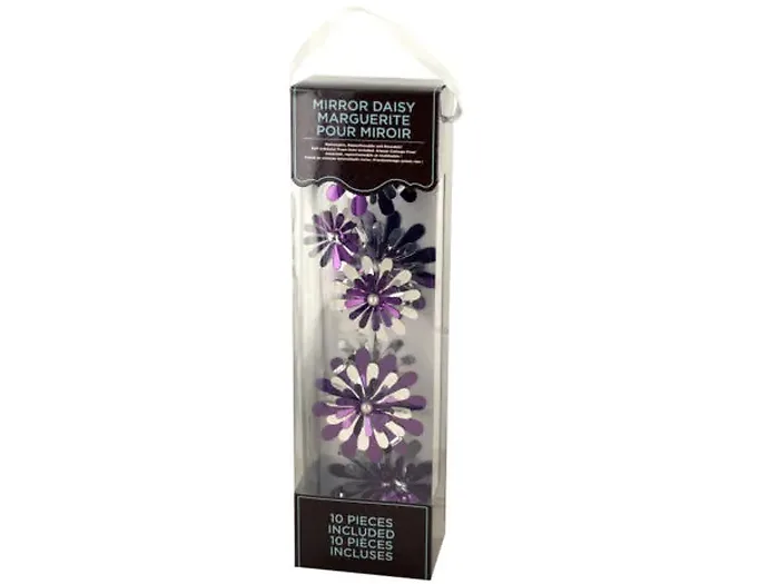 Add a touch of elegance to your walls with this 10-piece 3D Mirror Daisy Wall Decor Set. Featuring beautifully layered purple and silver mirror flowers with faux pearl center accents, these daisy decorations will brighten up any room.