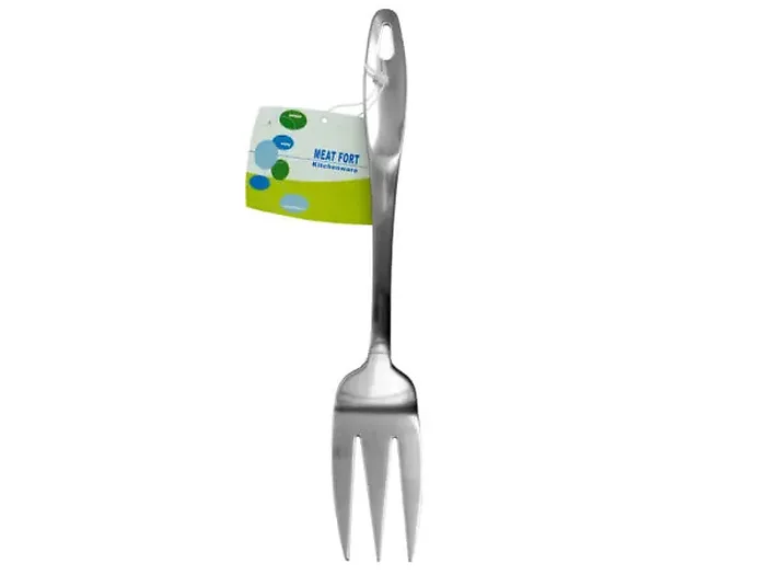 Elevate your dining experience with our Elegant Stainless Steel Meat Serving Fork. This stylish utensil is designed to effortlessly serve meat slices and more. Featuring a sturdy three-prong design, it comes with a comfortable, curved handle that includes a convenient hang hole for easy storage.