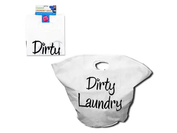 Easily gather and hold all your dirty laundry with this convenient Printed Drawstring Laundry Bag featuring sturdy nylon construction that lets you easily transport loads to and from the laundry room or laundromat. Bag is made of durable nylon with a black nylon drawstring. Bag is printed with white graphic wording that says either "Wash Me" or "LAUNDRY" with a clothespin in place of the "N". Comes in assorted styles: grey "LAUNDRY" and blue "Wash Me". Measures approximately 22" x 36". Comes packaged in a hanging poly bag.