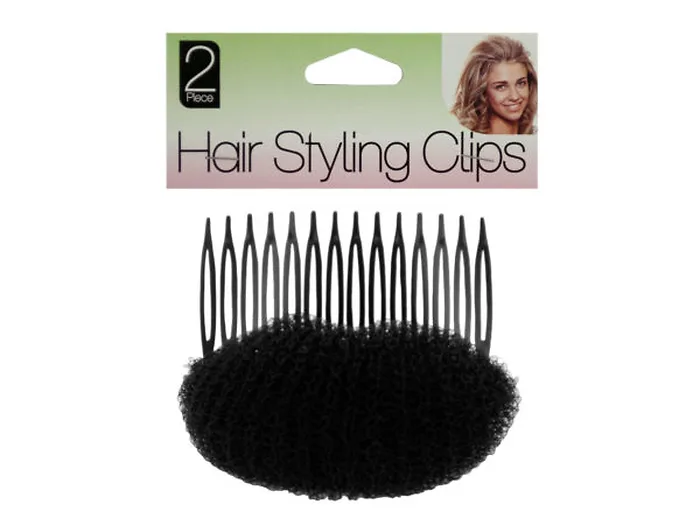 Easily create beautiful updos with this Volumizing Hair Styling Comb Accessory featuring a plastic comb with a soft mesh round roller for adding volume. Simply wrap your hair around the roller and secure the comb to create a perfect, round bun. Comb measures approximately 3.25" x 2.75". Comes in assorted colors: black and blond. Comes packaged in a poly bag with a header card.