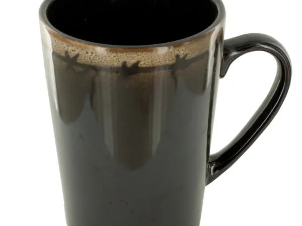 14 oz. Tall Brown Ceramic Mug with Beige Rim