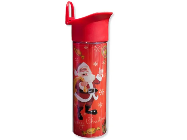 Elevate your hydration game with our 15 oz. Fuchsia Holiday Double Wall Water Bottle. Perfectly designed for both hot and cold beverages, this bottle features a striking fuchsia Christmas theme insert that adds a festive touch to your drinks. The clear double wall Tritan plastic construction not only enhances the aesthetics but also ensures your beverages stay at the right temperature.