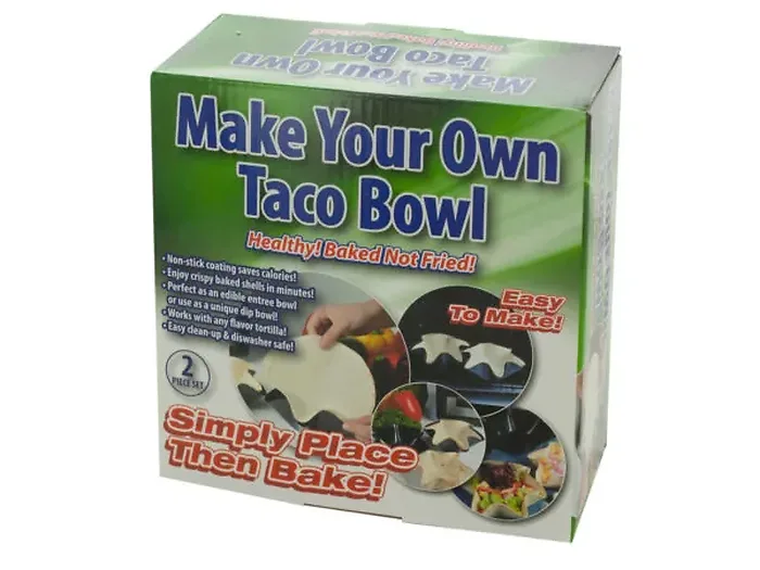 Create delicious taco bowls in minutes with the DIY Taco Bowl Baking Set. This innovative 2-piece set features wavy metal bowls designed to hold tortillas perfectly while baking. Simply place your tortillas in the bowls, bake them to achieve a crispy texture, and enjoy tasty tacos or dips!