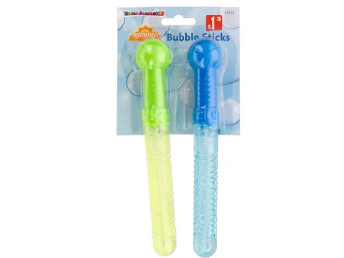 Each stick measures approximately 8 inches long and comes packaged with wands for an easy bubble-blowing experience. Available in assorted colors, these bubble sticks are designed for ages 3 and up. Get ready for bubbly adventures this spring and summer!