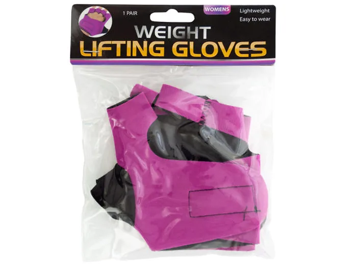 Gear up properly for workouts with these Women's Weight Lifting Gloves featuring a comfortable, open-knuckle design made of flexible neoprene. Gloves are lightweight and easy to wear with adjustable hook and loop closures. One size fits most. Comes packaged in a poly bag with a header card.