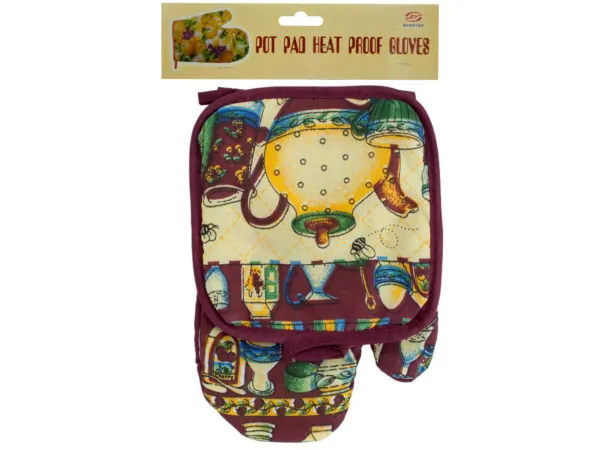 The oven mitt measures approximately 9" x 6.25", while the pot holder measures 6.75" x 6.75". Ideal for everyday use or as a thoughtful gift, this set comes packaged in a poly bag with a header card, making it easy to display.