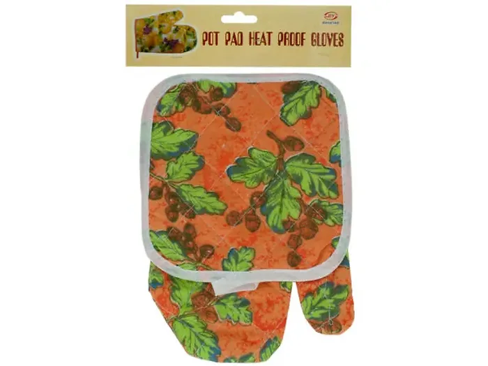 This Charming Floral & Fruit Design Oven Mitt & Pot Holder Set is perfect for safely handling hot dishes from the oven. The set includes a padded mitt that provides excellent heat protection for hands and a matching pot holder, both featuring delightful floral and fruit prints.