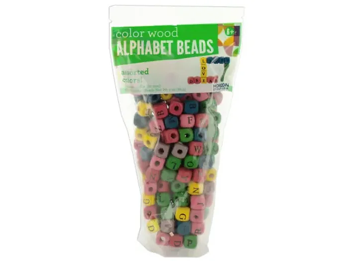 Assorted Color Wood Alphabet Cube Beads Set