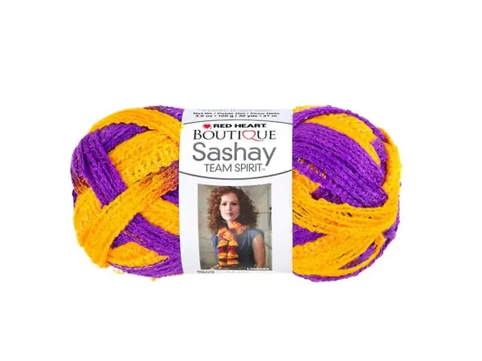 Elevate your crafting experience with our Purple & Gold Team Spirit Sashay Yarn. This stunning yarn combines a rich golden yellow and regal purple, accented with a sparkly silver edge. Perfect for creating eye-catching scarves and accessories, it adds a touch of team spirit to your projects.